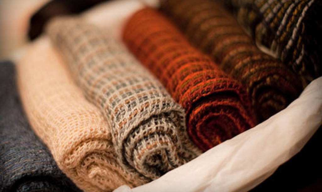 現在は、羊毛を手染めし、手で糸を紡ぐところから 全ての工程が手仕事で行われる手織りの毛織物がホームスパン と定義されています。