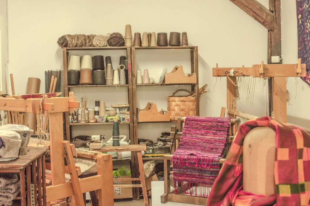現在は、羊毛を手染めし、手で糸を紡ぐところから 全ての工程が手仕事で行われる手織りの毛織物がホームスパン と定義されています。